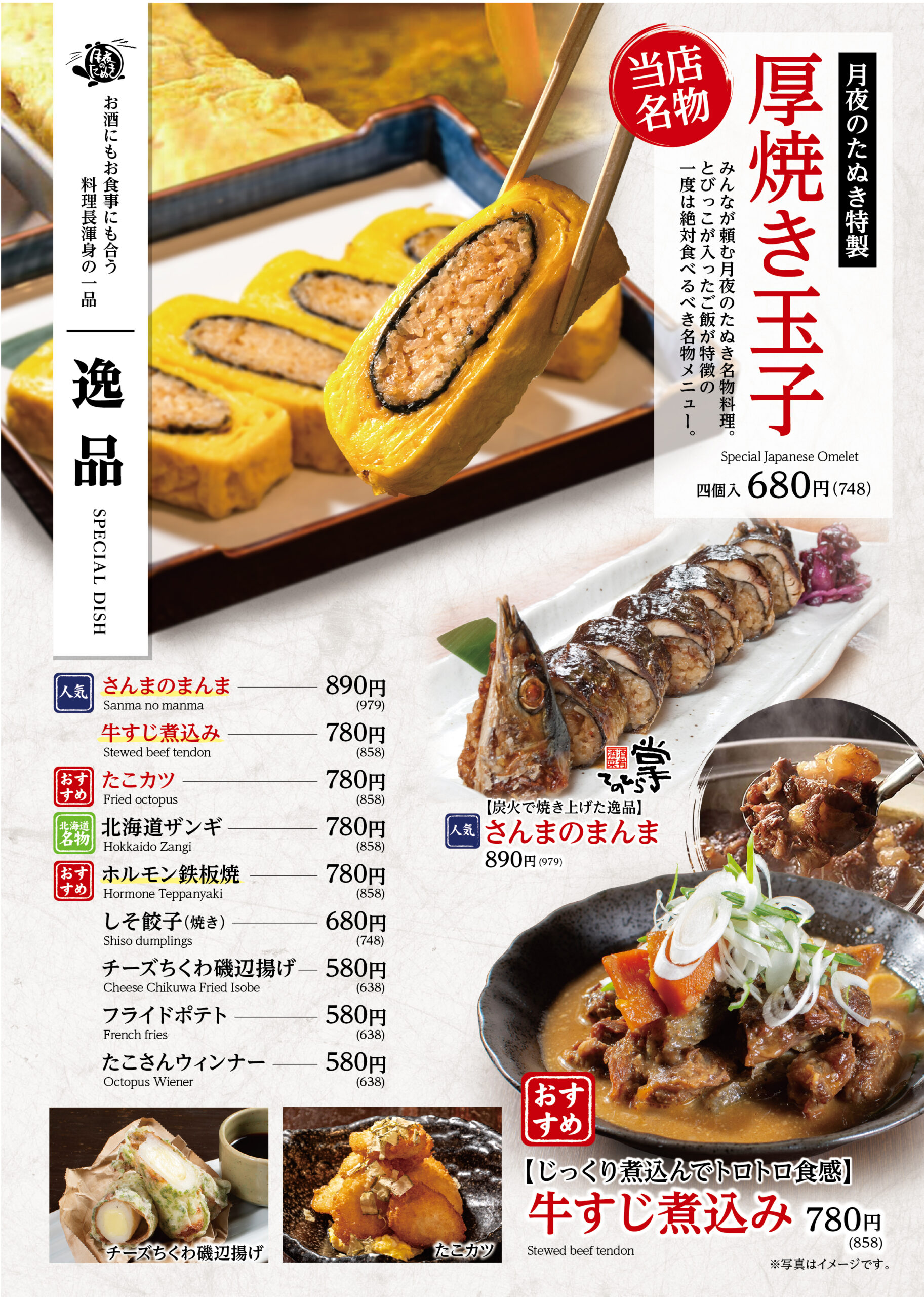 狸を楽しむグランドメニュー!