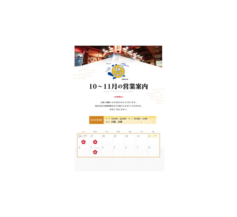 いつもサイトをご覧いただきありがとうございます。11月の営業カレンダーをご用意いたしました。当店の営 […] -
